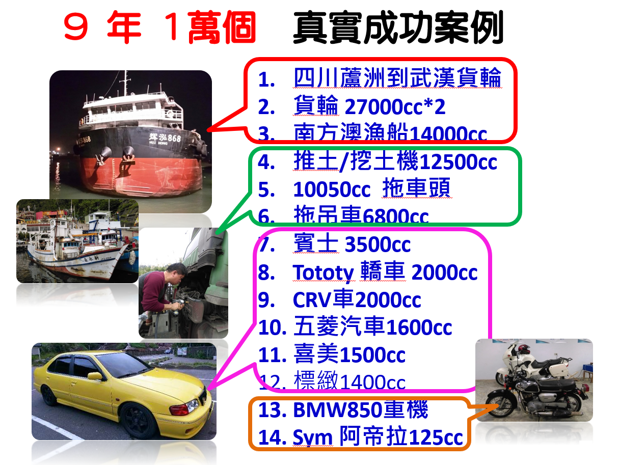 另有機車專用小分子空氣燃料棒。船舶、燃油發電機需客製化。