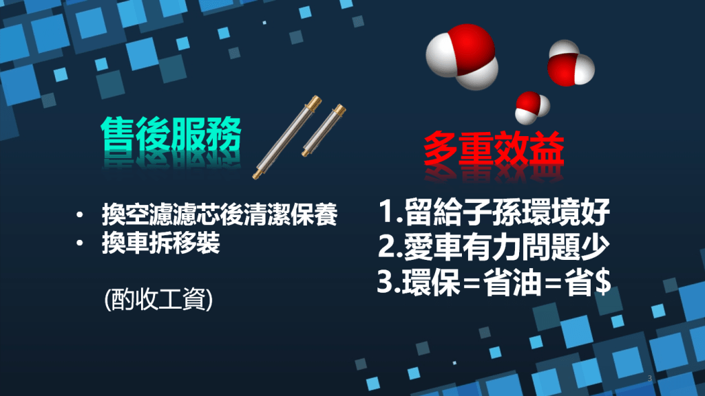 小分子空氣燃料棒能降空污、回復馬力、省油。立即有感 !