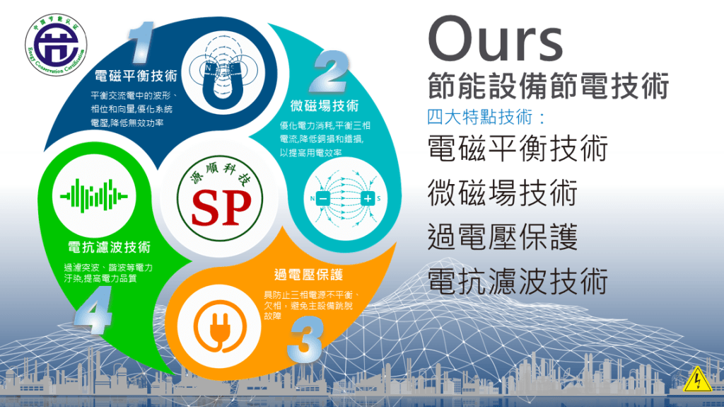我們的節能設備,經長期嚴格試驗與測試,除具備一般節電功能外,更重要的是所增設的穩壓功能及全自動偵測系統,較市面上任何一種產昂更加完備,且所生產之機種皆適合世界各地區使用。在全球天然能源來源日益短缺,環保意識抬頭,新一代替代性能源又尚未開發成功之時,我們所要做的第一件事就是節約用電;而本公司發展方向就是從節約用電的電力管理系統開始,同時發展高效率負載及高效率節能系統,進而邁向發展再生能源更以研發替代性能源為最高目標。