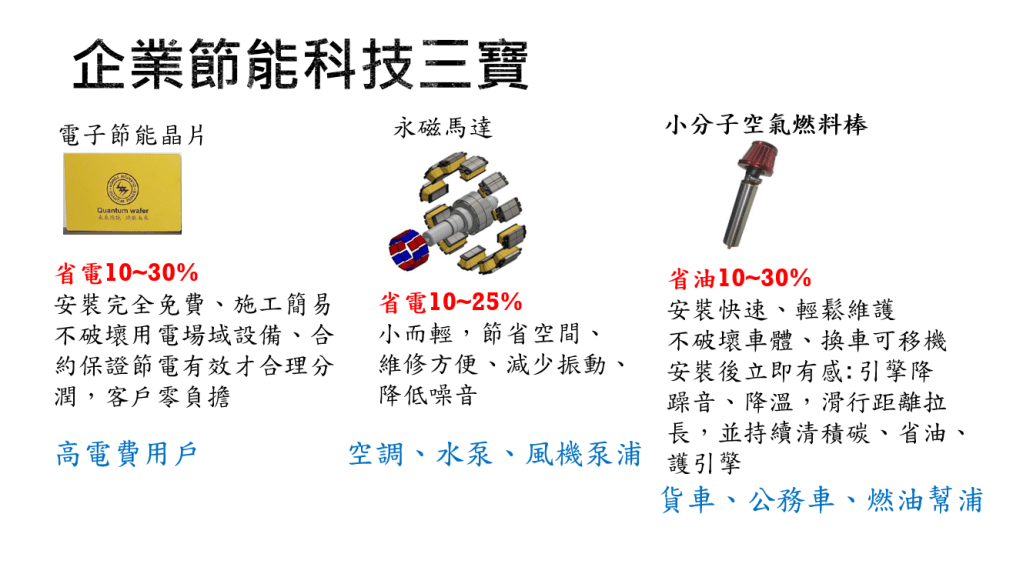 量子節電貼片 量子節電貼片安裝不介入電力設備及電路,有效降低諧波達到節電效果。每個月數萬到數十萬元高額電費的用戶只需提供電費帳單,免費安裝試用一個月後視節電效果簽約即可。 EPSON MFP image 分享此文: 按一下即可分享至 X(在新視窗中開啟) X 按一下以分享至 Facebook(在新視窗中開啟) Facebook 喜歡 正在載入...